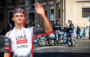 El ciclista vivió un momento surrealista en Italia cuando un agente de la policía apareció para detenerlo sin un motivo aparente, por lo que Isaac no entendía que es lo que estaba pasando.