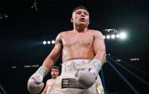“Ya regresamos ahora como campeones mundiales, no como absolutos, pero bueno, vamos a seguir trabajando para que lo podamos volver a ser”, dijo el pugilista mexicano