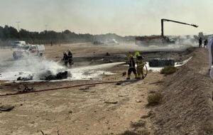 InternacionalAvión de combate se estrella durante vuelo de demostración en Dubái; falleció el piloto (Video) admin4 weeks ago01 mins El avión se estrelló contra el suelo en el Aeropuerto Internacional Al Maktoum de Dubai World Central, provocando una gran bola de fuego y una densa columna de humo negro. Post navigation Previous: Buscan consensos para ley general para la cultura de la pazNext: David Benavidez noquea a Yarde y revela que su siguiente pelea será contra Zurdo Ramírez