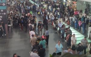 InternacionalCaos en el AICM tras suspender operaciones por fuertes lluvias (Video) admin4 months ago01 mins Por segunda vez en menos de 24 horas, el Aeropuerto Internacional Benito Juárez de Ciudad de México (AICM) ha cancelado y retrasado vuelos, lo que ha afectado a decenas de pasajeros. Post navigation Previous: Primera imagen completa de las nubes nocturnas de MarteNext: FOTOS: Las inundaciones que dejó la tormenta eléctrica en CDMX y Edomex