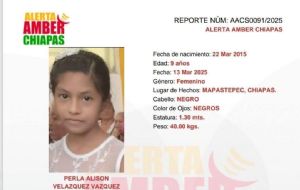 InternacionalChiapas: Hallan el cuerpo sin vida de niña de 9 de años desaparecida desde el 13 de marzo admin7 months ago01 mins Por la menor, que el día en que fue hallada muerta cumpliría 10 años, Alerta Amber informó que la última vez que se le vio fue en el ejido La Victoria, del municipio de Mapastepec. Post navigation Previous: Claudia Sheinbaum llama a participar en elección judicialNext: Hallan a mujer policía con signos de violencia y semienterrada en zona boscosa; detienen a su expareja por feminicidio