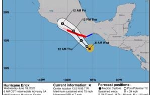 La presidenta Claudia Sheinbaum informó ayer por la noche que Erick se encontraba a 335 km de la costa entre Oaxaca y Guerrero.