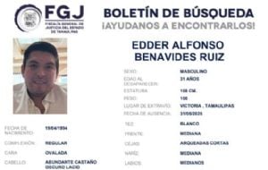 InternacionalFamiliares de joven desaparecido en un río de Tamaulipas exigen transparencia en su búsqueda admin7 months ago01 mins Edder Alfonso Benavides Ruiz, un joven de 31 años, se encuentra desaparecido desde el pasado viernes 31 de mayo en Ciudad Victoria, Tamaulipas. Post navigation Previous: Hugo Aguilar Ortiz: Quién es el candidato mixteco que se perfila a presidir la Suprema CorteNext: Ozzy Osbourne está tan ansioso por su último concierto que piensa que morirá en el escenario