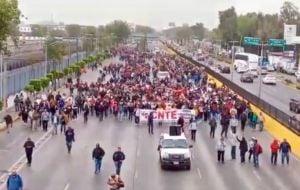 InternacionalMaestros de la CNTE bloquean Circuito Interior y provocan caos para llegar al AICM (Video) admin8 months ago01 mins Los integrantes de la CNTE amenazan con estallar un paro indefinido para exigir que se abrogue la ley del ISSSTE del 2007. Post navigation Previous: Ataques israelíes en toda Gaza golpean casas y matan al menos a 85 palestinos, según médicosNext: México podría tener un nuevo día feriado oficial en diciembre, esta es la fecha sugerida