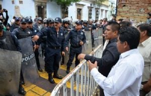 InternacionalProtestan maestros por visita de Osorio Chong a Oaxaca… lo declaran persona non grata admin10 years ago01 mins Post navigation Previous: Hallan dos narcofosas en Veracruz con al menos 7 cuerposNext: Desaparición de 5 jóvenes es sólo ‘una cosa que sale mal”: Duarte