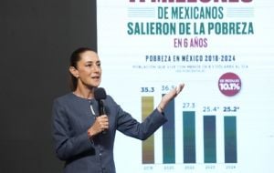 InternacionalSheinbaum presume cotización del peso y que 11 millones de mexicanos salieron de la pobreza con AMLO admin7 months ago01 mins La presidenta pidió exponer dos elementos más que tienen que ver con un artículo del The Wall Street Journal que habla favorablemente de México. Post navigation Previous: ¿De qué trata el primer episodio de Chespirito: sin querer queriendo?, desató las críticas contra Roberto Gómez BolañosNext: “Se lo merece”: Belinda habla sobre Cazzu y la llena de halagos | VIDEO