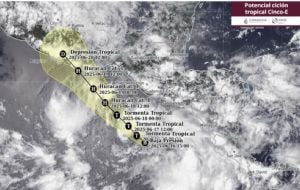 InternacionalSurge el potencial ciclón tropical Cinco-E; en horas podría convertirse en la tormenta Erick admin6 months ago01 mins Se prevén lluvias intensas y oleaje elevado en costas de Oaxaca y Chiapas; esta es su trayectoria rumbo a Guerrero Post navigation Previous: Separan del cargo a director de Medio Ambiente tras riña callejera (VIDEO)Next: ¿Karol G protagonizará una telenovela? La ‘Bichota’ comparte FOTOS con actrices de Televisa