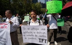 InternacionalTrabajadores del IFT protestan frente al Senado para exigir certeza con sus liquidaciones (Video) admin8 months ago01 mins Los manifestantes dijeron temer que ocurra con ellos lo mismo que con los trabajadores de otros cinco organismos autónomos que desaparecieron y que no han recibido su finiquito. Post navigation Previous: Pensión Bienestar: ¿qué adultos mayores cobran los 6,200 pesos el 9 de mayo? | CALENDARIONext: Trump acuerda reducir aranceles a autos, acero y aluminio del Reino Unido en acuerdo comercial