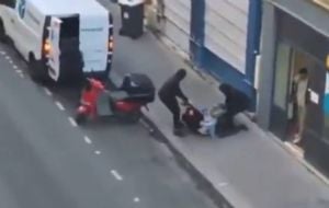 InternacionalTres encapuchados intentan secuestrar a hija de magnate de criptomonedas en París (Video) admin7 months ago01 mins En el ataque, los tres encapuchados intentaron meter a la fuerza a la madre y a su hijo, de dos años, a una furgoneta. El intento de secuestro fue grabado por transeúntes. Post navigation Previous: EU acusa de narcoterrorismo a mujer mexicana por proveer armas al CJNG y traficar indocumentadosNext: Clemente Castañeda advierte a Unión Europea que en México existe un deterioro del Estado de derecho