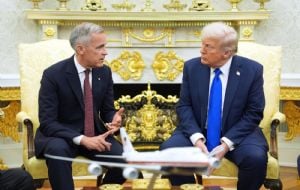 InternacionalTrump dice que EU tiene "conflicto" pero también "amor" con Canadá admin3 months ago01 mins La segunda visita de Mark Carney a Estados Unidos se produce en un momento en que una de las alianzas más duraderas y amistosas del mundo se ha visto fracturada por la guerra comercial de Trump y las amenazas de anexión. Post navigation Previous: Identifican a presuntos responsables de amenazas contra la UNAMNext: ¿Cuánto costará rentar un departamento del INVI en CDMX? esto es lo que se sabe