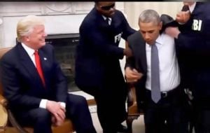 Las imágenes “deepfake” muestran muestran a agentes del FBI que interrumpen una reunión entre el actual presidente y su predecesor, a quien empujan hasta ponerlo de rodillas para esposarlo, mientras el magnate sonríe, con “YMCA”, de Village People en el fondo.