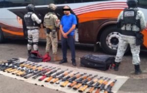 NacionalAseguran arsenal al interior de autobús de pasajeros en caseta de Costa Rica, Culiacán admin7 months ago01 mins Más de 20 fusiles AK-47 fueron incautados por autoridades federales y estatales durante una revisión en Culiacán Post navigation Previous: Llega a Jalisco el primer autobús eléctrico mexicanoNext: Senado aprueba el ingreso a México de militares del Comando Norte del Ejército de EU