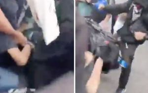 NacionalAsí agredieron a policías y reporteros, integrantes del Bloque Negro en marcha del 2 de octubre | VIDEO admin3 months ago01 mins Durante la marcha del 2 de octubre, un grupo de encapuchados agredió a un policía en el Zócalo, mientras se demandaban justicia por Tlatelolco y los 43 normalistas desaparecidos Post navigation Previous: Israel confirma que mexicanos detenidos "están a salvo", serán deportados en los próximos díasNext: Desfogue de presa Benito Juárez inunda 200 casas en San Mateo del Mar, Oaxaca