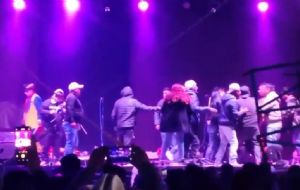 NacionalBajan a golpes de escenario a grupo musical en fiesta patronal de Toluca: VIDEO admin1 month ago01 mins Los integrantes del grupo Son Tepito fueron desalojados por los músicos de otra banda que querían tocar ante el público toluqueño Post navigation Previous: Se pronostican lluvias ligeras y temperaturas de mínimas de 19 grados en Monterrey para este miércoles 19 de noviembreNext: Ordenan decomisar bienes a Cristina Fernández por desfalco al Estado