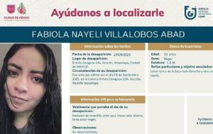 NacionalBuscan a Fabiola Nayeli Villalobos, desapareció en Ermita Iztapalapa desde el mes de septiembre admin2 months ago01 mins Según la ficha de búsqueda, Fabiola Nayeli mide 1.60 metros de estatura, tiene un lunar cerca de la boca del lado derecho y otro en el cuello, el día de su desaparición vestía pantalón de mezclilla azul, blusa blanca y tenis negros Post navigation Previous: Captan a hombre robando una máquina de peluches a plena luz del día en Edomex | VideoNext: Hoy No Circula Sabatino: ¿qué autos descansan este sábado 18 de octubre? | CALENDARIO