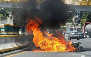 NacionalChoque entre motocicletas en km 30 de la México-Cuernavaca deja un muerto y una motocicleta en llamas admin5 months ago01 mins Según reportes, el motociclista circulaba aparentemente a exceso de velocidad cuando se impactó contra otra moto, lo que desató un aparatoso incendio Post navigation Previous: Video capta feminicidio en Guadalajara: sujeto discute con mujer y la asesina con arma largaNext: Niñas recrean escena de "Mentiras" y Luis Gerardo Méndez reacciona | VIDEO VIRAL