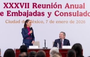 NacionalClaudia Sheinbaum se reúne con embajadores y cónsules en Palacio Nacional para dialogar sobre los planes para 2026 admin3 days ago01 mins En entrevista, embajadores de México en el exterior señalaron que también se dictaron las directrices en política exterior para este año y promover la inversión extranjera Post navigation Previous: CURP biométrica 2026: fechas clave, requisitos y cómo sacar una citaNext: Mariela Gutiérrez busca abrir el mercado de Estados Unidos al aguacate del Estado de México