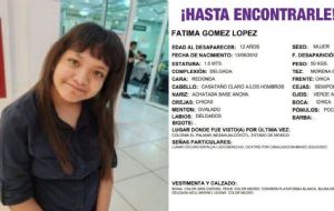 NacionalDesaparece Fatima Gómez, fue vista por última vez en Nezahualcóyotl, Estado de México admin7 months ago01 mins La Comisión de Búsqueda del Edomex emitió ficha por Fátima Gómez, de 12 años, desaparecida en Nezahualcóyotl; requiere medicamentos neurológicos y su familia está preocupada Post navigation Previous: Al grito de “Libertad para Palestina”, peleador irlandés somete a rival israelí VIDEONext: Lluvias colapsan la CDMX; inundaciones, afectaciones viales y caída de árboles (Video)