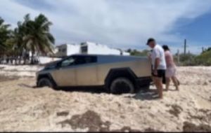 NacionalExtranjeros invaden zona de anidación de tortugas con su Cybertruck en playa mexicana | VIDEO admin7 months ago01 mins Los turistas se vieron obligados a pedir ayuda a elementos de la Secretaría de Seguridad y lugareños para poder liberar su lujoso vehículo valuado en 2 millones de pesos Post navigation Previous: Extranjeros invaden playa mexicana con su Cybertruck en zona de anidación de tortugas | VIDEONext: Niño de ocho años es atacado por un cocodrilo en Pinotepa Nacional, Oaxaca