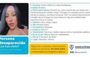 NacionalHallan con vida a Ahtziri Itzihuari, pero su esposo colombiano aún sigue desaparecido admin8 months ago01 mins El matrimonio se encontraba sin localizar desde el pasado 17 de abril en Zapopan, Jalisco Post navigation Previous: INAPAM 2025: Restaurantes que dan descuento a adultos mayores por el Día de las MadresNext: Mariana Seoane salió con un actor más joven y aseguran que lo mantenía: "se encargaba de los gastos de los dos"