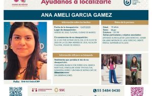 NacionalMadre de Amelí García pide ayuda a para encontrar a su hija admin5 months ago01 mins En la esquina de Correo Mayor y Moneda, Gámez informó que la adolescente de 19 años desapareció en el Pico del Águila, en el Ajusco. Post navigation Previous: Temporada de lluvias: Estas son las ventajas del polvo del Sahara para el clima en MéxicoNext: Avanzadas de la FIFA están sorprendidas con el AIFA, dice Isidoro Pastor Román