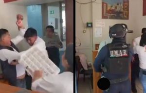 NacionalMeseros y cocineros se dan golpiza frente a clientes tras descuerdo en restaurante bar Reyes de Oro | VIDEO admin9 hours ago01 mins Un elemento de la Unidad Motorizada de Acción Rápida acudió para atender el incidente, en el centro de Oaxaca Post navigation Previous: Meseros y cocineros se dan golpiza frente a clientes tras desacuerdo en restaurante bar Reyes de Oro | VIDEONext: Rosa Icela Rodríguez presenta avances de la atención a las causas en Puebla, eje de estrategia nacional de seguridad