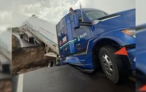 NacionalPipa de gas queda colgando tras deslave en la Carretera Transpeninsular | Video admin3 months ago01 mins Una pipa que transporta gas LP quedó colgando luego de un deslave ocasionado por la crecida del río San Ignacio en Baja California Sur Post navigation Previous: Trasladan a Texas a la bebé Jazlyn, salvada por su abuela Alicia Matías tras explotar pipaNext: Konan Big se disfraza de Aldo de Nigris junto a un actor de baja estatura como Abelito | VIDEO