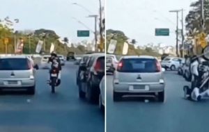 Motociclista patea a vehículo en movimiento y termina cayendo sobre el asfalto | Video admin6 hours ago 0