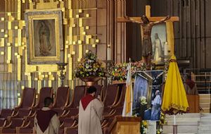 NacionalRinden homenaje al Papa Francisco desde la Basílica de Guadalupe admin7 months ago01 mins En una misa oficiada por el cardenal Carlos Aguiar Retes, los presentes mostraron su devoción con pancartas, aplausos y hasta lágrimas Post navigation Previous: Peña Nieto reaparece para dar su pésame por la muerte del papa FranciscoNext: ¿De quién habla la canción que Grupo Frontera no cantó en la Feria de San Marcos?