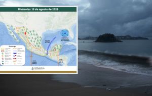 NacionalSMN alerta por fuertes marejadas en 3 estados este miércoles 12 de agosto admin4 months ago01 mins El oleaje con estas características puede representar un riesgo para la población en caso de meterse a nadar al mar, así como para las embarcaciones. Post navigation Previous: María del Pilar Alarcón desapareció hace 2 años en Puebla, activan ficha de Interpol para encontrarlaNext: Revelan las primeras imágenes de los 26 narcotraficantes extraditados a EU